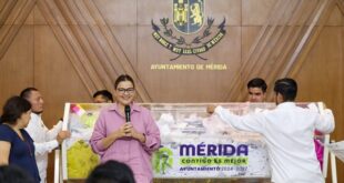Mérida, 28 de abril de 2026.- En reconocimiento al compromiso y corresponsabilidad de la ciudadanía que cumple oportunamente con el pago del impuesto predial, el Ayuntamiento de Mérida llevó a cabo el Sorteo “Gana Mérida, ganas tú”, en el que se entregaron 50 premios, entre automóviles, motocicletas, laptops, televisores y tabletas. Al encabezar el evento, la presidenta municipal, Cecilia Patrón …