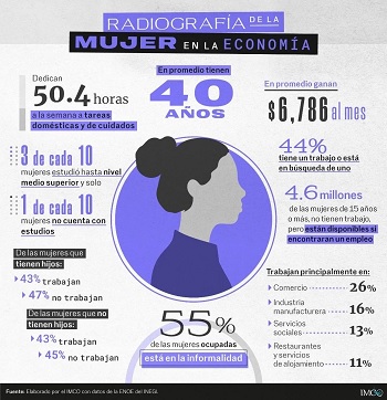 Se ubica entre las entidades con menor participación económica de las mujeres: 44.9%, lo que le coloca en el lugar 26 de 32 a nivel nacional.