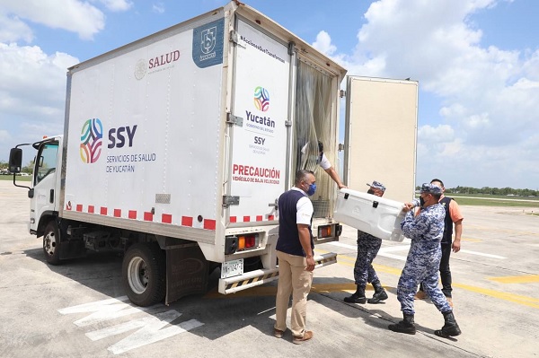 Por instrucción del Gobernador Mauricio Vila Dosal, el director de Prevención y Protección de la Salud de la SSY, Isaac Hernández Fuentes, acudió a la Base Aérea Militar (BAM) número 8, para supervisar la llegada de este nuevo cargamento, que arribó a bordo de una aeronave Spartan C-27J de la Fuerza Aérea Mexicana, matrícula 3205, proveniente de Ciudad de México, y tocó el territorio a las 14:10 horas.