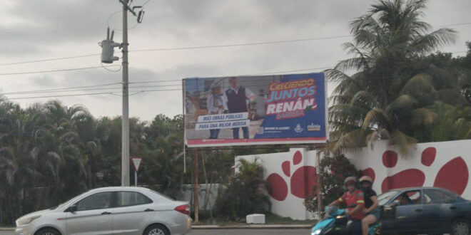 En colonias y principales avenidas de la capital yucateca, así como en la periferia comenzó la instalación de lonas donde ‘presumen’ los logros de Barrera Concha alcanzados en su segundo año de administración de su tercer periodo como Presidente Municipal.
