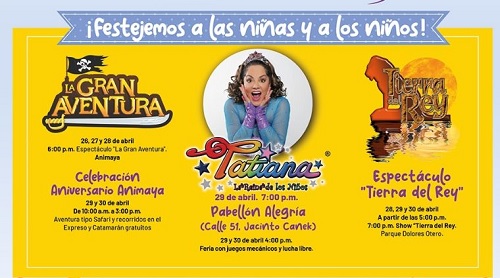 Se destacó que Tatiana, la reina de los niños, ofrecerá un concierto gratuito, se llevará a cabo el sábado 29 de abril en el Pabellón de la Alegría, ubicado en la calle 51 de la avenida Jacinto Canek, al poniente de la ciudad. El concierto será a las 7:00 de la noche.