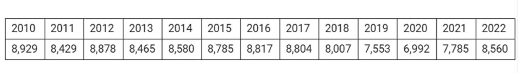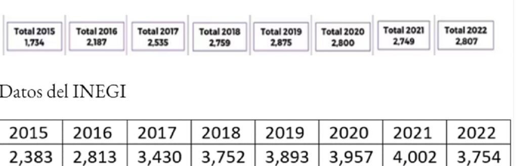 Como se observa, de 2015 al 2022 hay un “subregistro” de 7,818 casos de muertes violentas de mujeres, de conformidad con el siguiente cuadro comparativo entre los datos reportados por el Secretariado Ejecutivo y el INEGI: