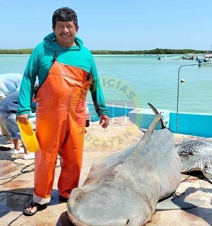 Este sorprendente hallazgo se dio durante una intensa jornada de pesca, cuando don Eduardo Huchim y su tripulación recogían sus redes y descubrieron al inmenso escualo enredado en ellas accidentalmente.