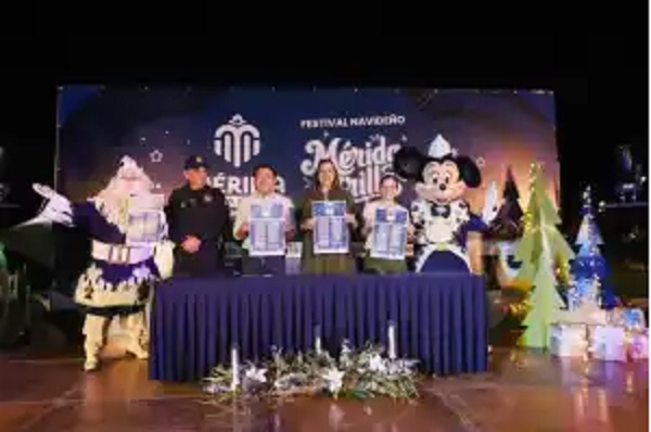 Mérida, 27 de noviembre de 2025.- El Ayuntamiento de Mérida presentó el Festival Navideño “Mérida Brilla”, que este año incluye dos nuevas y esperadas atracciones: una pista de hielo y un sendero de luz, ambos totalmente gratuitos. El programa está diseñado para fortalecer la convivencia familiar y llevar actividades festivas a colonias y comisarías de toda la ciudad.