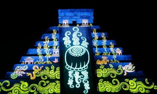 Durante aproximadamente 30 minutos, la pirámide se convierte en una pantalla que narra el esplendor de los Itzáes, el pueblo guerrero que hizo de Chichén Itzá uno de los centros políticos, religiosos y científicos más importantes del mundo maya.