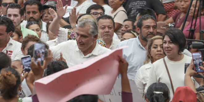 Mérida, Yucatán, 18 de julio de 2023 (Visión Peninsular).- De gira por Yucatán, Adán Augusto López Hernández negó estar pagando los cientos de espectaculares y bardas con su imagen y exigió al árbitro electoral investigar quien los está financiando.