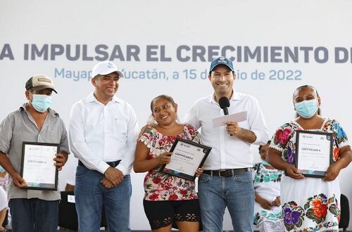 Mayapán, Yucatán, 26 de junio de 2022.- Cada vez son más las familias yucatecas que reciben el apoyo del Gobernador Mauricio Vila Dosal, quien en esta ocasión estuvo en el municipio de Mayapán distribuyendo apoyos para impulsar las actividades del campo, así como certificados de vivienda, mismos que contribuyen a la transformación de Yucatán y la vida de la población de esta demarcación.