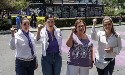 Xóchitl Galvéz, Kenia López Rabadán y María Teresa Ealy en la manifestación