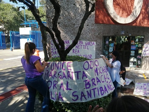 Manifestamos nuestro desacuerdo y rechazo a las expresiones misóginas y discriminatorias dichas el pasado 23 de octubre durante la mañanera, por el señor Paco Ignacio Taibo II, funcionario público a cargo del Fondo de Cultura Económica”, expresaron las manifestantes al leer un pliego petitorio en nombre de diversas colectivas feministas.