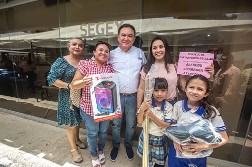 Adicionalmente, a la entrega de los paquetes, fueron otorgadas 16 desbrozadoras a 15 escuelas; 20 bocinas y 6 kits deportivos a 26 escuelas. También, se hizo entrega de 50 equipos de cómputo y 3 proyectores a supervisores escolares como herramienta de apoyo para las labores administrativas.