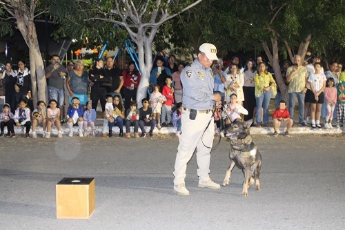La Unidad Canina (K-9) hizo demostraciones e informó sobre el entrenamiento de los canes para la detección de sustancias ilícitas y localización de personas.