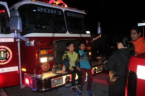 Bomberos y paramédicos mostraron el equipamiento de carros-tanque y ambulancias. Niñas, niños y jóvenes abordaron las unidades y también subieron a las motos del grupo especial GOERA.