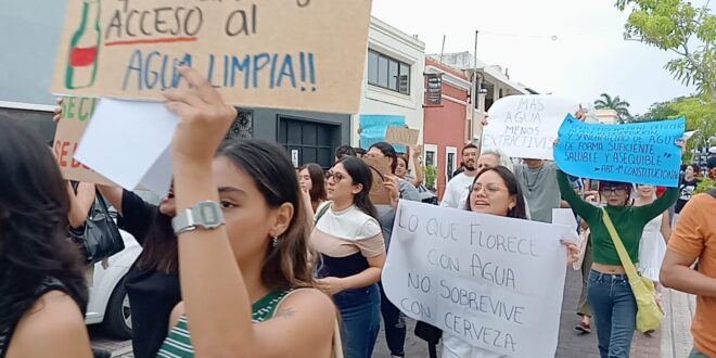 Mérida, Yucatán, a 26 de julio de 2025.– Colectivos e integrantes de la Asamblea por la Defensa del Agua y Territorio de Yucatán marcharon la tarde de hoy sábado contra la instalación de la cervecera Heneiken en Kanasín.