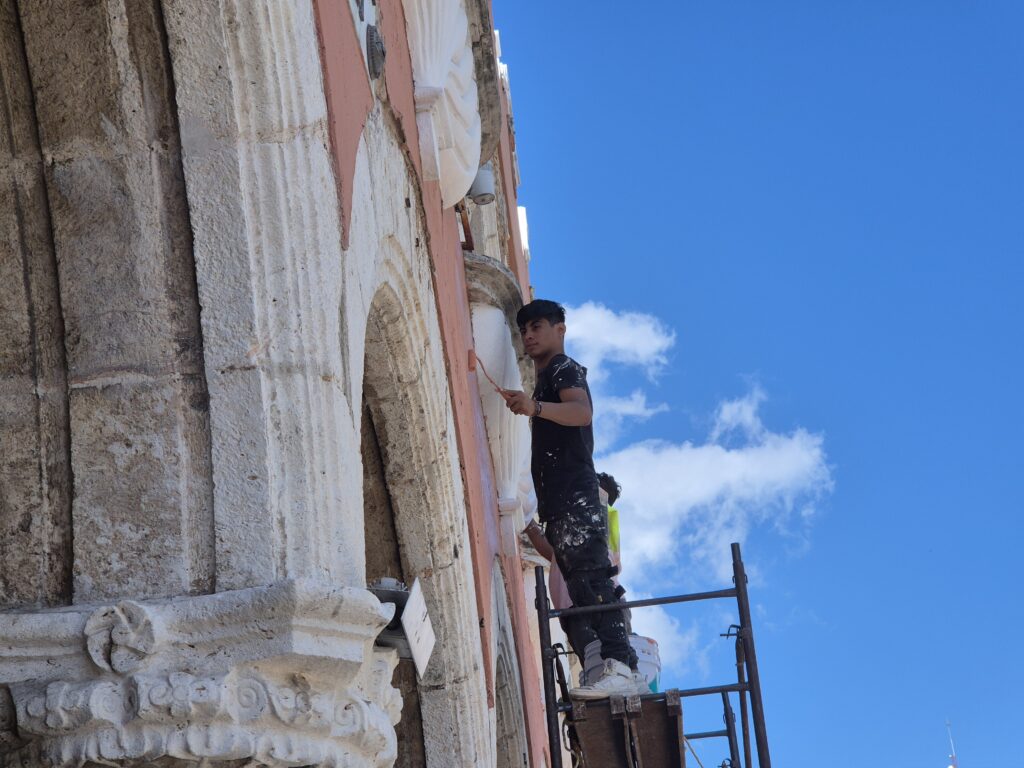 Trascendió que sólo se aplica pintura a la fachada del Palacio. Sólo eso, es lo autorizado por el Instituto Nacional de Antropología e Historia (INAH).