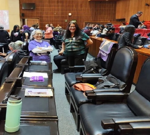 Ella y otras más de 30 mujereres, en el auditorio Heberto Castillo de la Cámara de Diputados dialogaron durante más de 4 horas con la relatora de Naciones Unidas sobre violencia contra las mujeres, la jordana Reem Alsalem. Convocadas por la presidenta de la mesa directiva Kenia López Rabadan y la abogada Patricia Olamendi.