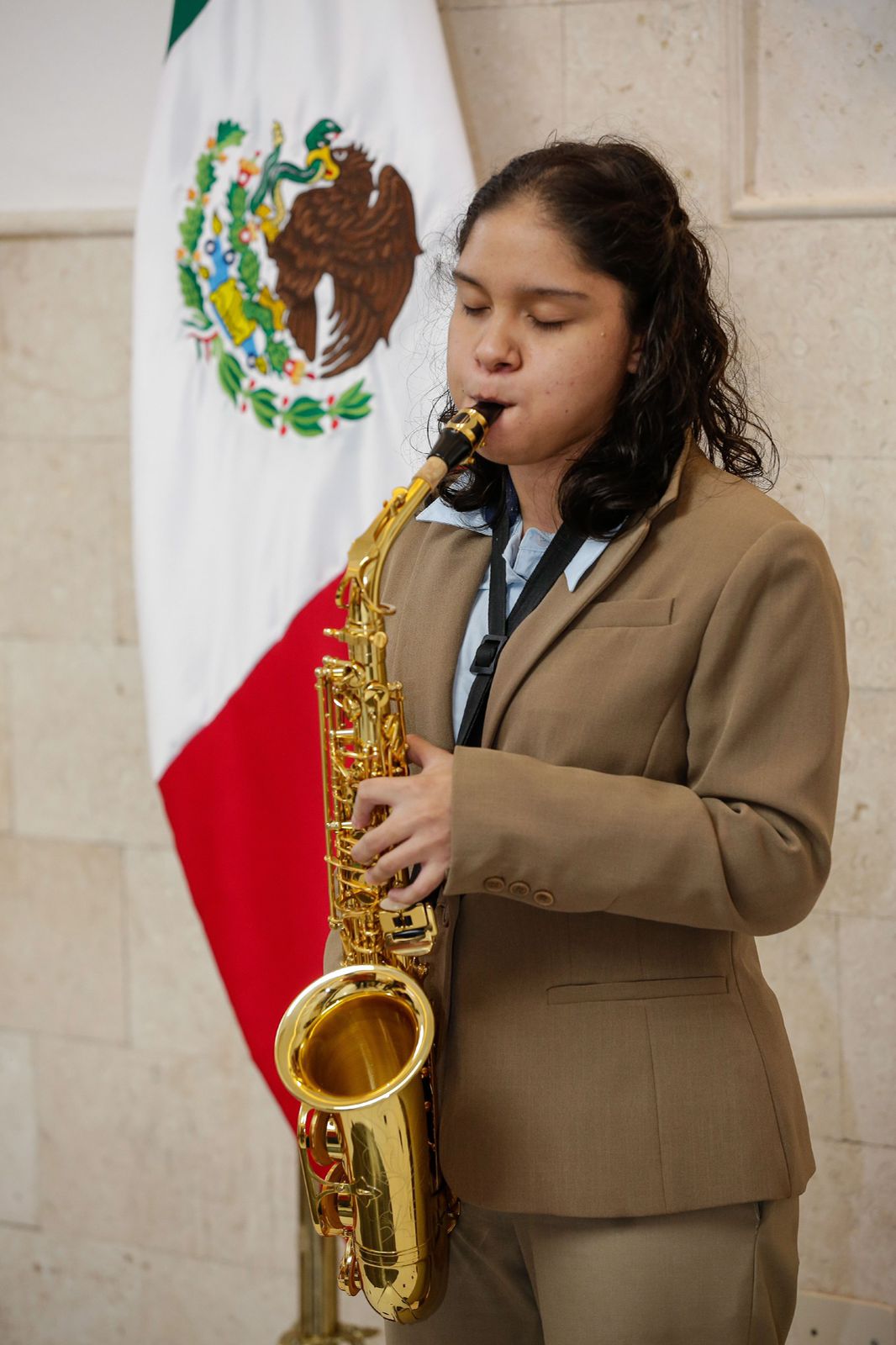 “A Mayra la conozco desde 2013. Cuando la conocí junto con mi esposa Diana durante un miércoles ciudadano, nos quedamos impresionados por su carisma y talento. Con el tiempo la hemos visto crecer, incluso nos acompañó tocando el saxofón en el último informe de actividades del DIF”, recordó.