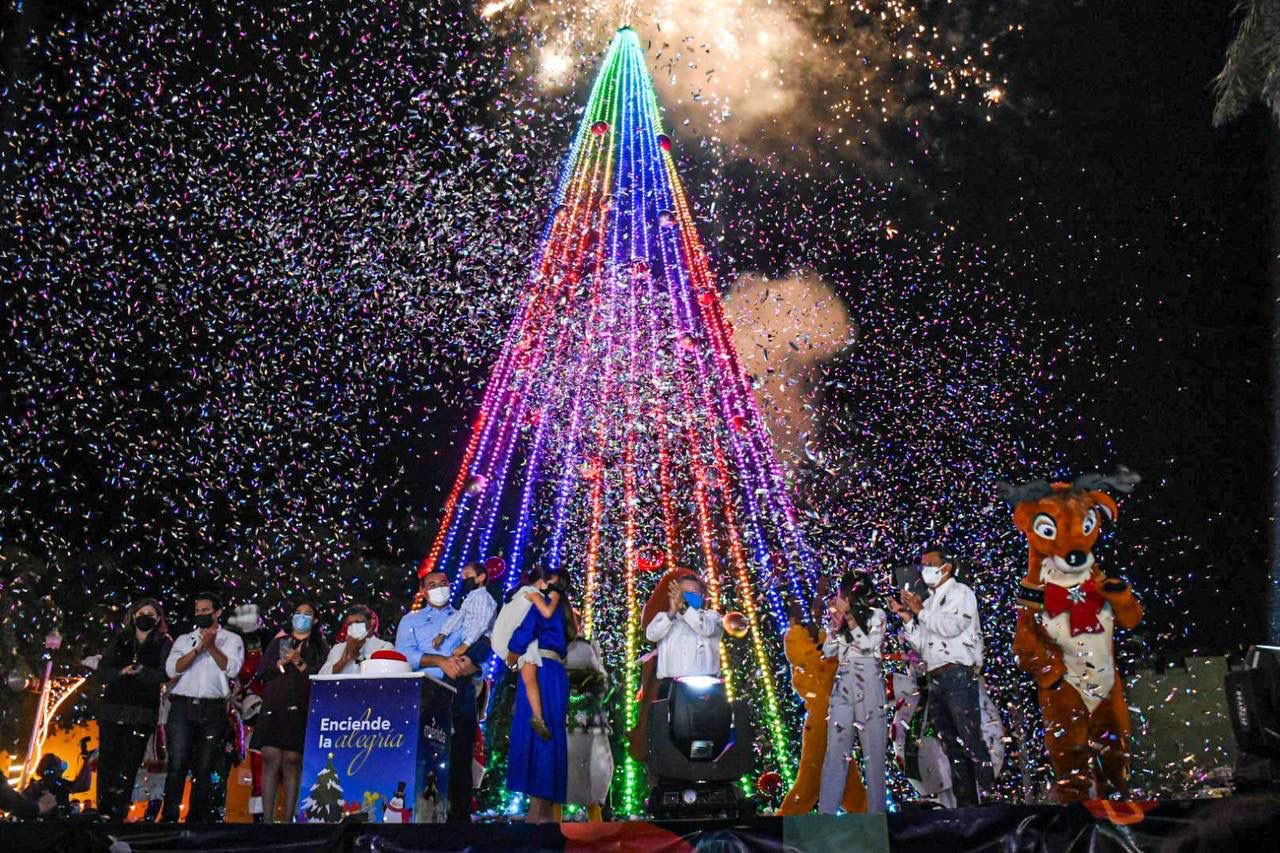 Cabe recordar que el árbol navideño cuenta con más de 7,000 luces multicolor de Led con efectos luminosos, asimismo se encuentran figuras luminosas en 3D, como un túnel, esferas navideñas, el trineo de Santa Claus y un nacimiento completo, además una cortina de luces destellantes en la entrada.