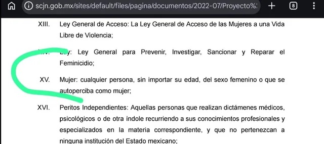 Sin embargo, señalan que la Suprema Corte de Justicia de la Nación propone definir «mujer» como «cualquier persona del sexo femenino o que se autoperciba como mujer».