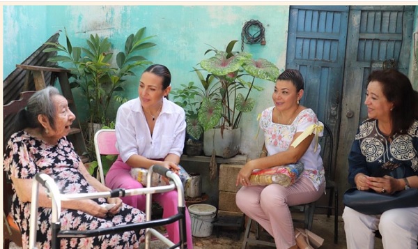 Irene Couoh Uitz, una de las beneficiarias visitadas, agradeció a Diana Castillo y a las voluntarias por el apoyo, ya que vive sola y padece de varices y gonartrosis, lo que le impide ir por su despensa.