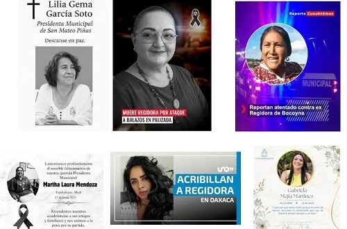 A las tres regidoras asesinadas se suman los ataques en junio de dos presidentas municipales, Lilia Gema García Soto de San Mateo Piñas y Martha Laura Mendoza Mendoza en Tepalcatepec, Michoacán.