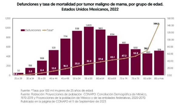 El Instituto Nacional de Estadística y Geografía (INEGI) informó que este mal es prevenible y curable pero desafortunadamente se consolidó como la primera causa de muerte entre los tumores malignos en México durante el 2024; con un 99.2 % de los fallecimientos registrados en mujeres, según las estadísticas difundidas en el marco del Día Internacional de la Lucha contra el Cáncer de Mama, que se conmemora cada 19 de octubre.