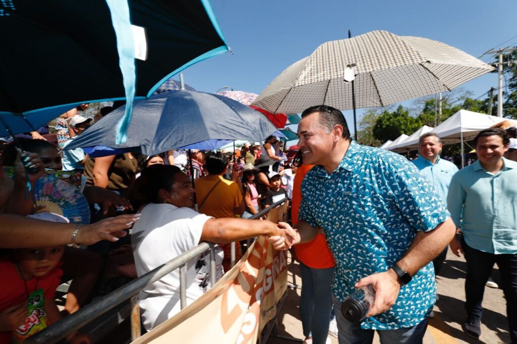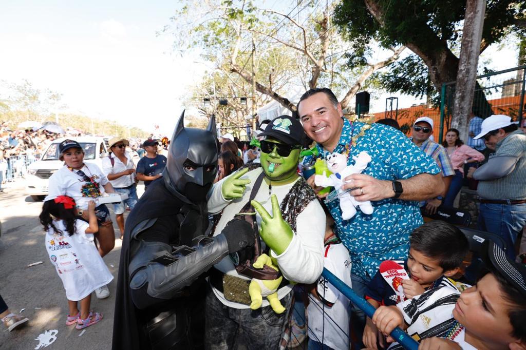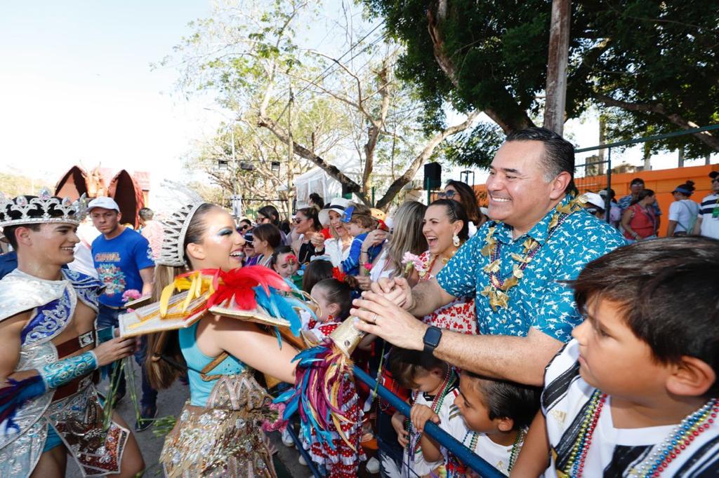 Encabezando la alegre jornada del día, Renán Barrera interactuó en distintos momentos con integrantes de diferentes comparsas y carros alegóricos que se acercaron al palco a saludarlo.