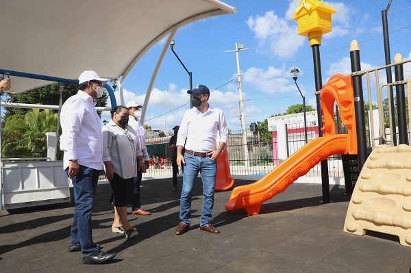 Como parte de sus actividades en Tahmek, Vila Dosal entregó también los trabajos de remodelación y construcción del parque central de esta población, los cuales dan una imagen renovada a este sitio y lo convierten en un atractivo punto para el disfrute y la sana convivencia de los locales y visitantes.