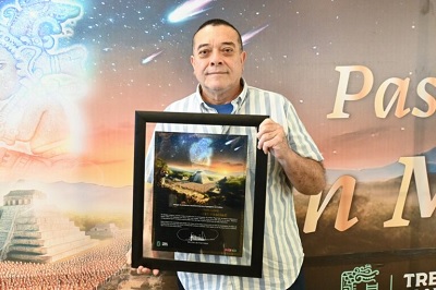 Durante el acto, Barbosa López, originario de la Ciudad de México pero residente en Mérida desde hace varios años, recibió un reconocimiento y diversos obsequios de manos del director general del Tren Maya, Óscar Lozano Águila.
