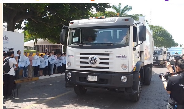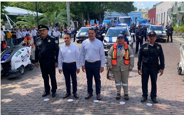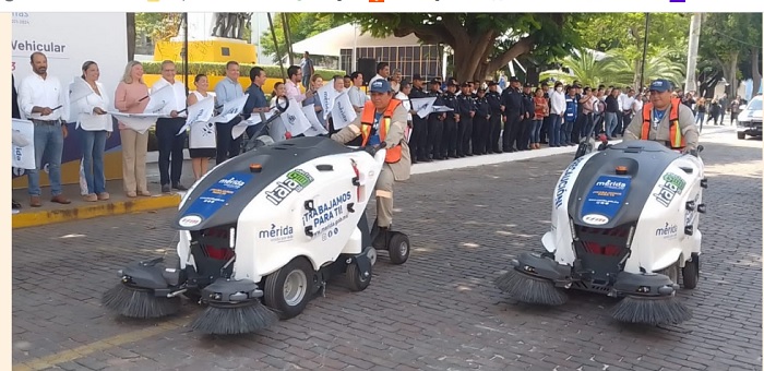 Con una inversión cercana a los 45 millones de pesos, el alcalde de Mérida, Renán Barrera Concha, entregó este día nueva flotilla vehicular para diferentes direcciones y poder brindar mejores servicios a la ciudadanía, que incluyó patrullas eléctricas, barredoras viales mecánico-aspirantes, desazolvadoras y camiones recolectores compactadores, entre otras unidades, en ceremonia efectuada en el Parque de La Mejorada.