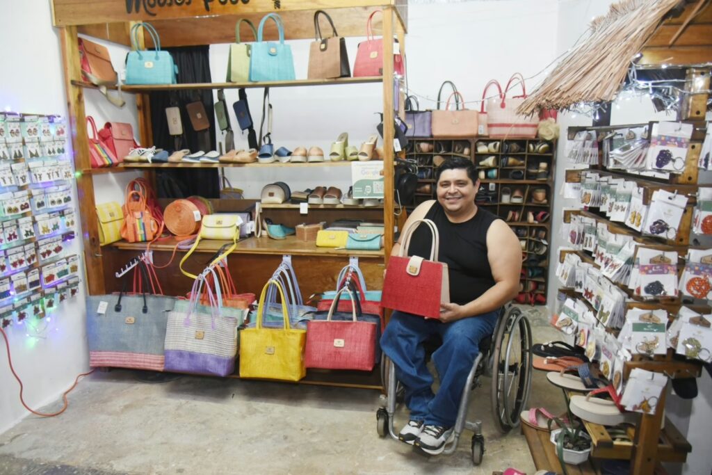 Pero Xmatkuil también tiene satisfechos a los emprendedores que ofrecen ahí sus productos por el éxito que han tenido, como es el caso de Moisés Poot, fabricante y diseñador de zapatos, bolsas, carteras, aretes, bisutería y algunas otras prendas hechas con fibra de henequén.