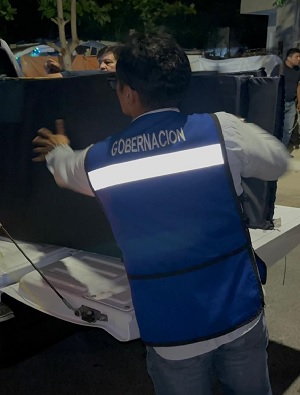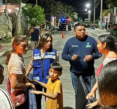 En la colonia San Luis Sur Dzununcán, la Dirección de Gobernación y el DIF Municipal en coordinación con la Unidad Municipal de Protección Civil entregaron colchonetas y comida.