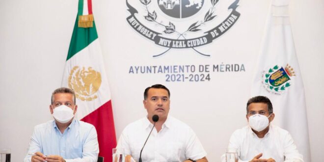 Mérida, Yucatán a 18 de julio de 2022.- El Alcalde Renán Barrera Concha presentó el proyecto de modernización de luminarias, mantenimiento integral de las glorietas y sistemas de fuentes del Municipio, con el objetivo de conservar en óptimas condiciones los espacios públicos, mejorar la imagen urbana y generar un ahorro por la prestación del servicio de alumbrado público.