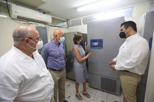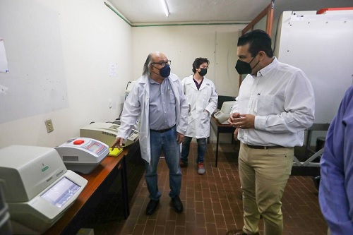 En representación de Vila Dosal, el titular de la Secretaría de Investigación, Innovación y Educación Superior (Siies), Mauricio Cámara Leal, constató el funcionamiento de los equipos que permitirán a los académicos reforzar el trabajo de investigación de enfermedades relacionadas con el mal de Chagas, la tuberculosis, toxoplasmosis, rickettsia y Covid.