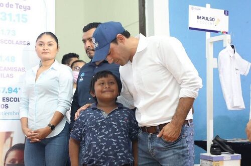 En esta localidad del interior del estado, Vila Dosal continuó con la distribución de paquetes del programa “Impulso Escolar”, con lo que ninguna niña, niño ni joven se quedará sin sus útiles escolares y contarán con lo necesario para el regreso a clases. Apoyo que forma parte de los 267,931 en total que se reparten por todo el estado y significa un ahorro de 2,850 pesos por cada hijo para las familias.