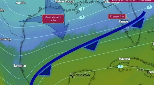 Mérida, 3 de febrero de 2026.- La Coordinación Estatal de Protección Civil (Procivy) dio a conocer que durante la tarde del 5 de febrero llegará un frente frío a la Península de Yucatán. Este sistema estará seguido por una masa de aire polar, la cual mantendrá condiciones de frío en el estado hasta el 10 de febrero.
