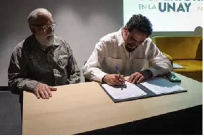 Como parte de las actividades, se firmó un convenio entre la UNAY y la Delegación de la Cámara Nacional de la Industria Cinematográfica en el estado, lo que permitirá fortalecer la colaboración institucional, generar espacios de análisis, reflexión y producción, y promover el arte, la creatividad y el intercambio cultural.