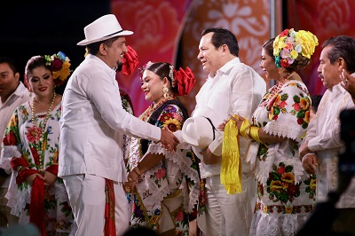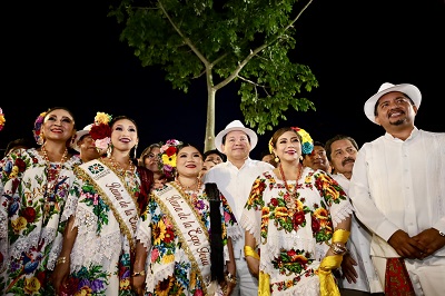 Acompañado de la presidenta honoraria del Sistema para el Desarrollo Integral de la Familia (DIF) Yucatán, la maestra Wendy Méndez Naal, y del alcalde anfitrión, Homero Novelo Burgos, el mandatario estatal encabezó el corte del listón inaugural de esta magna fiesta, así como la coronación de Suemi Cupul Cupul, reina de la edición 35 de la feria patronal, y de Margely May Dzul, reina de la Etnia Maya.