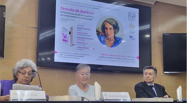 SemMéxico, Ciudad Universitaria, 8 de marzo, 2024.-Carlos Welti Chanes construyó una antología de la obra, pensamiento y acción de la maestra Teresita de Barbieri, quien a lo largo de más de 30 años estudió, analizó, escribió, sobre el feminismo latinoamericano, su particularidades, sus intereses y sus preocupaciones desde su mirada socialista. Una verdadera intelectual, cuyas aportaciones son fundamentales y vigentes.