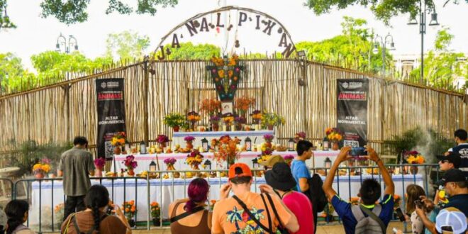 Tanto el viernes 1 como el sábado 2 de noviembre permanecerá expuesto el Altar Monumental en la Plaza Grande para seguir la tradición yucateca de honrar a los fieles difuntos.