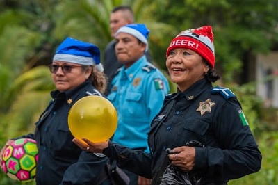 Participaron en la caravana “Una chula Navidad en tu comisaría”, el director de la Policía Municipal de Mérida, Rafael Chaires Cuevas y el titular de Desarrollo Social y Combate a la Pobreza, Arturo León Itzá.