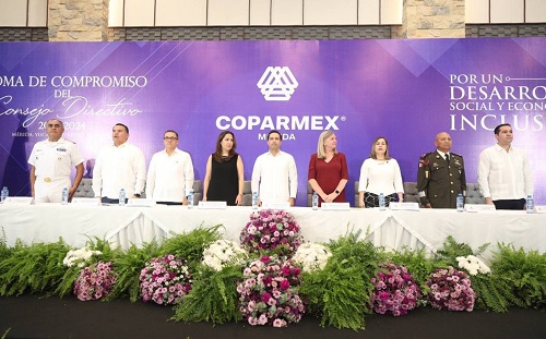 • Vila Dosal encabezó la toma de compromiso del Consejo Directivo 2023-2024 de la Coparmex Mérida, en el cual continuará la actual presidenta, Beatriz Gómory Correa.