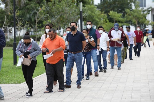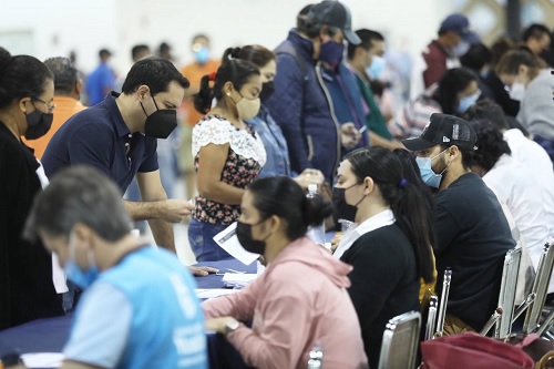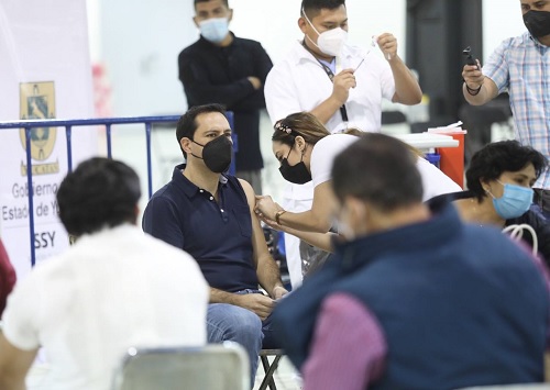 -Junto con demás ciudadanos, pasó por las áreas de recepción de documentos, aplicación de la dosis y observación, en el macrocentro instalado en el Centro de Convenciones “Yucatán Siglo XXI”.