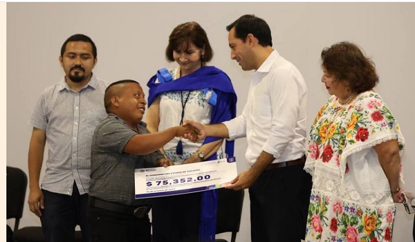 En ceremonia celebrada en el Centro de Convenciones Yucatán Sigo XXI, Vila Dosal entregó estímulos económicos por casi un millón de pesos del Programa de Acciones Culturales Multilingües y Comunitarias (PACMYC) para apoyar proyectos culturales en beneficio de 158 personas que habitan en 14 municipios de la entidad.