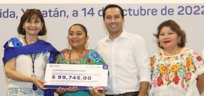En ceremonia celebrada en el Centro de Convenciones Yucatán Sigo XXI, Vila Dosal entregó estímulos económicos por casi un millón de pesos del Programa de Acciones Culturales Multilingües y Comunitarias (PACMYC) para apoyar proyectos culturales en beneficio de 158 personas que habitan en 14 municipios de la entidad.