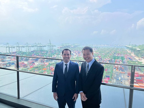 Singapur, 19 de octubre de 2023.- Para conocer el movimiento y buenas prácticas en materia logística que se puedan implementar con la ampliación del Puerto de Altura de Progreso, en aras de detonar el desarrollo económico, la industria, el turismo, y generar más y mejores empleos para los yucatecos, el Gobernador Mauricio Vila Dosal visitó el Puerto de Singapur, considerado como uno de los más grandes del mundo.