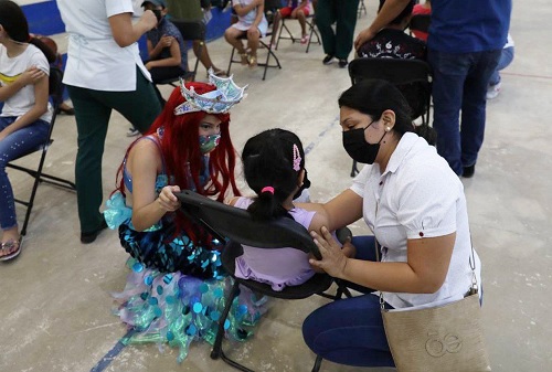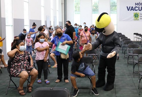 Mérida, Yucatán, 18 de julio de 2022.- Menores de 5 a 11 años de edad de Mérida empezaron a recibir la primera dosis de la vacuna contra el Coronavirus, proceso que se desarrolla en orden y de manera amena para los infantes, con lo que Yucatán continúa protegiendo la salud de la población, sobre todo, de los más pequeños.