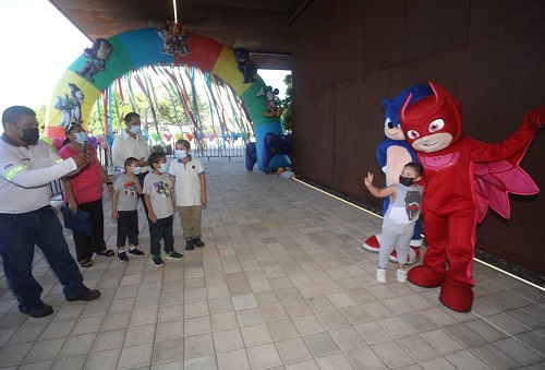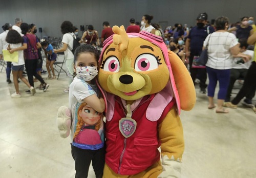 Alejandra Medrano Pasos, madre de familia, aseguró que no hay que bajar la guardia frente al Coronavirus y esta estrategia le da tranquilidad a ella y su hija, quien llegó con un poco de temor por las agujas, pero logró distraerse y divertirse, con las botargas de Paw Patrol y los globos multicolores que se encontró en la entrada del Centro de Convenciones Yucatán Siglo XXI.