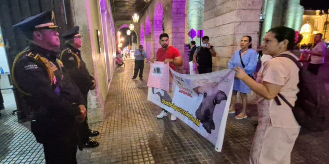 Mérida, Yucatán, a 20 de octubre de 2025.– Un grupo de ciudadanos protestaron del parque de Santa Lucía hasta Palacio de Gobierno para exigir leyes más severas que castiguen el maltrato animal.