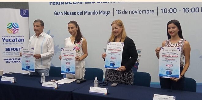 “Carnival Cruise Line, una de las compañías de cruceros mas reconocidas a nivel mundial, ha puesto sus ojos en el talento yucateco. Es una oportunidad única para aquellos que buscan una carrera en la industria del turismo y desean formar parte de un empresa líder en el sector”, expresó Iraís Barón Zermeño, Subsecretario del Trabajo de la Secretaría de Fomento Económico y Trabajo (Sefoet), en rueda de prensa verificada en la sede del organismo.