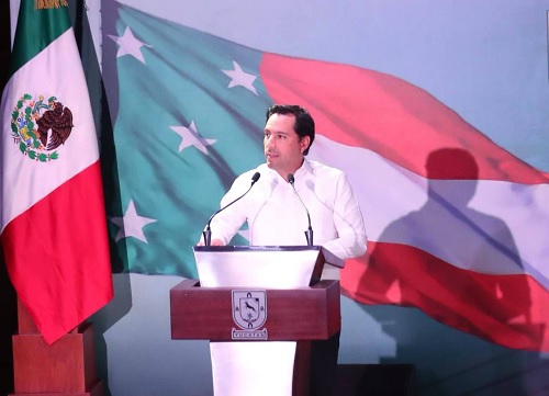 “Por ejemplo, en ceremonias oficiales, cívicas, culturales, escolares o deportivas, se deberá rendir honores a la bandera yucateca y deberá ir acompañada de su himno. Y previamente hacer los honores a nuestra enseña nacional e interpretar nuestro himno nacional mexicano”, agregó.